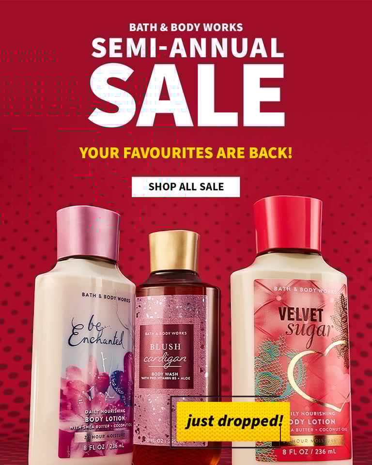 Bath and Body Works is your go-to place for gifts & goodies that surprise & delight. From fresh fragrances to soothing skin care, we make finding your perfect something special a happy-memory-making experience. Oh! And while you're browsing, shop our latest & greatest selection of lotions, soaps and candles!