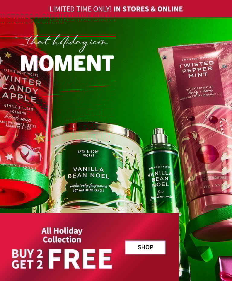Bath and Body Works is your go-to place for gifts & goodies that surprise & delight. From fresh fragrances to soothing skin care, we make finding your perfect something special a happy-memory-making experience. Oh! And while you're browsing, shop our latest & greatest selection of lotions, soaps and candles!
