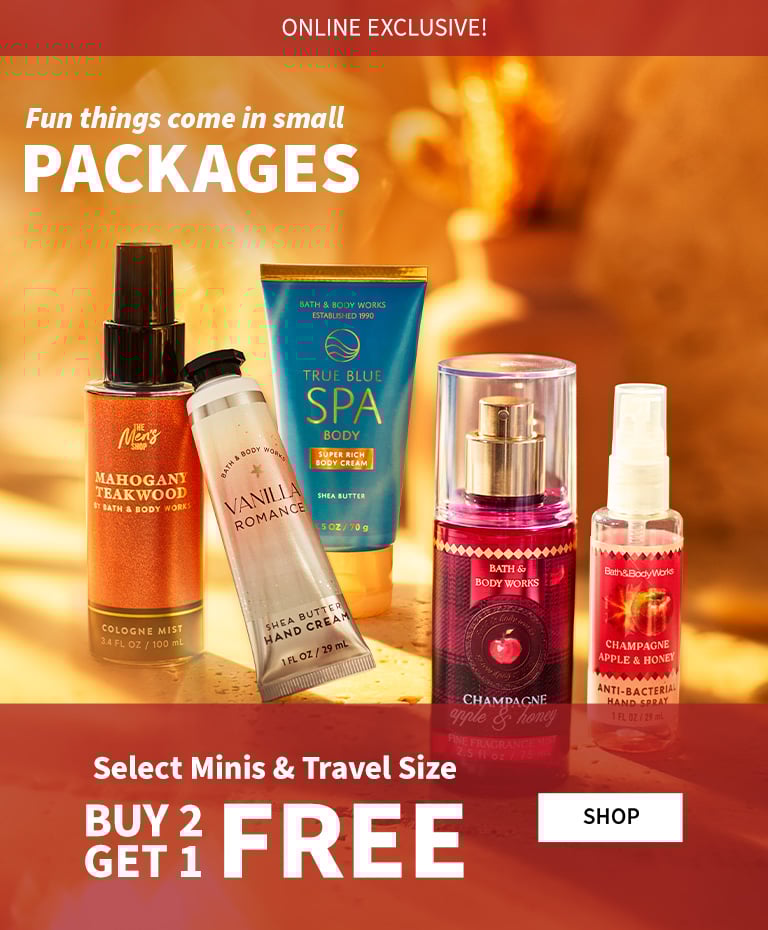 Bath and Body Works is your go-to place for gifts & goodies that surprise & delight. From fresh fragrances to soothing skin care, we make finding your perfect something special a happy-memory-making experience. Oh! And while you're browsing, shop our latest & greatest selection of lotions, soaps and candles!